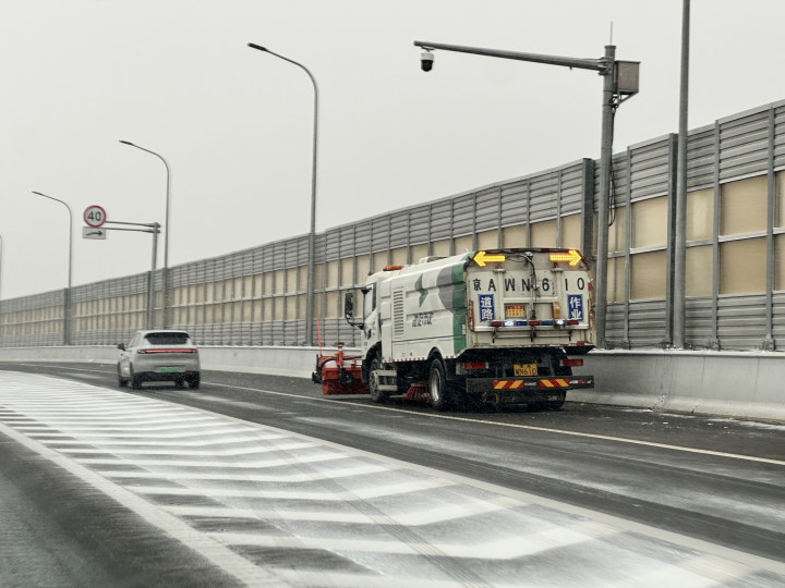 京新高速上,环卫车辆正在进行扫雪作业。新京报记者王贵彬摄 同时,交管部门将通过北京交警微博、交通广播、户外信息显示屏、导航平台等渠道高频次发布实时路况、建议绕行路线等提示信息,服务市民出行。 交管部门提示,降雪天气后道路湿滑,部分路段将出现结冰情况,请市民朋友尽量减少驾车出行,特别是减少去往山区道路等危险路段,新手司机应主动放弃自驾车出行,选择公共交通工具,首选地铁、城铁等轨道交通。